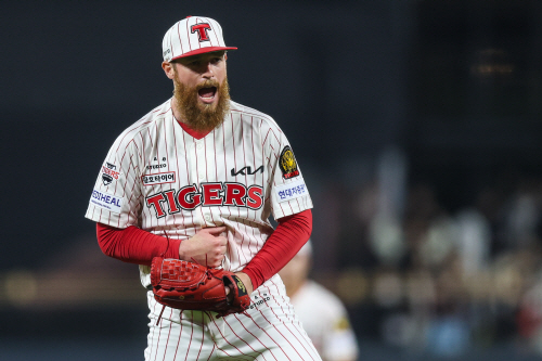 | 지난 24일 롯데와의 주말 1차전 경기에서 선발 등판해 9이닝 3피안타 2사사구 11탈삼진 무실점으로 완봉승을 달성한 올러가 포효하고 있다. 사진제공=KIA타이거즈 |