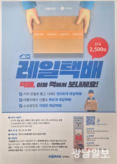 코레일 전남본부 관계자는 “레일택배는 정부의 대국민 체감형 서비스 개선 과제의 일환으로 추진된 새로운 생활물류 서비스”라며 “앞으로도 철도 인프라를 활용해 국민이 실질적으로 체감할 수 있는 공공서비스 확대를 위해 노력하겠다”고 말했다.