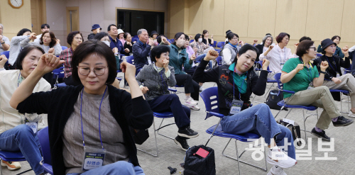 | 백세건강 걸음학교 28일 오전 광주 서구청 들불홀에서 열린 백세건강 걸음학교에서 참가자들이 올바른 걷기 방법 교육에 앞서 사전 스트레칭을 하고 있다.최기남 기자 bluesky@gwangnam.co.kr |