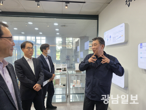 | 28일 중소벤처기업진흥공단 호남연수원에서 열린 광주 청년창업사관학교 현장 간담회에서 최승재 중소기업 옴부즈만이 청년창업사관학교를 둘러보고 있다. |