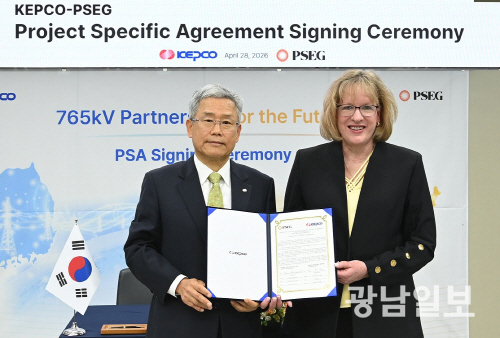 한국전력은 28일 서울 양재동 한전아트센터에서 PSEG와 765kV 초고압 송전망 사업 협력을 위한 계약을 체결했다.