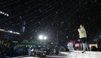 하얀 눈과 함께 펼쳐지는 가수 나비의 공연