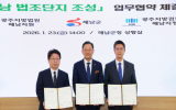 해남=성정수 기자 sjs8239@gwangnam.co.kr2026.01.27 05:34해남군은 최근 군청 상황실에서 광주지방법원 해남지원, 광주지방검찰청 해남지청과 함께 해남 법조단지 조성을 위한 업무협약을 체결했다. 이번 업무협약에는 명현관 해남군수와 김성흠 해남지원장, 윤석환 해남지청장이 참석했...