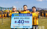 송태영 기자 sty1235@gwangnam.co.kr2024.03.10 14:19광주은행이 아시아축구연맹(AFC) 챔피언스리그 진출권을 따낸 광주FC에 후원금 40억원을 쾌척했다. 광주은행은 최근 광주축구전용구장에서 열린 광주FC의 홈 개막전에서 강기정 광주시장과 노동일 광주FC 대표이사,...