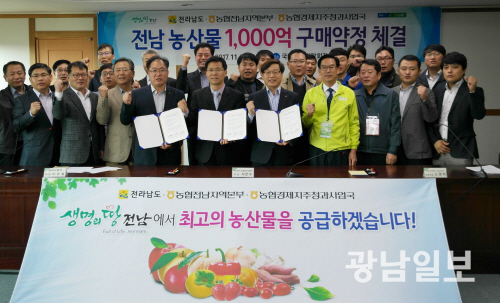 전남본부는 구매약정 체결식에 앞서 전남지역 16개시군 연합사업조직 마케터들과 함께 전남 농산물 판매확대를 위한 홍보의 시간을 가졌다.