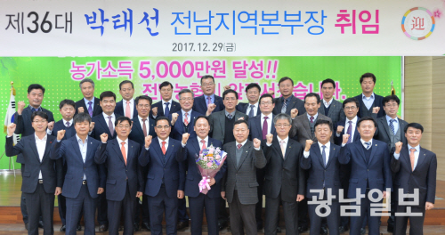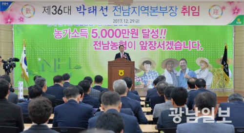 신임 박태선 본부장은 취임사에서 “농협 본연의 역할은 농업인이 생산해 주신 농축산물을 제값 받고 판매해 농가의 소득을 올려드리는 것”이라며 “이를 위해 전남농협 전 임직원은 우리의 문제는 현장에 답이 있다는 자세로 농심(農心)을 가슴에 품고 농업인 곁으로 다가가고, 농업인이 활짝 웃을 수 있는 전남 농촌을 만들 것”이라고 말했다.