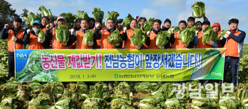 전남본부 임직원들은 농축산물 산지유통역량 강화를 위한 추진방안을 논의하고 농업인과 겨울배추 수확작업을 함께했다.