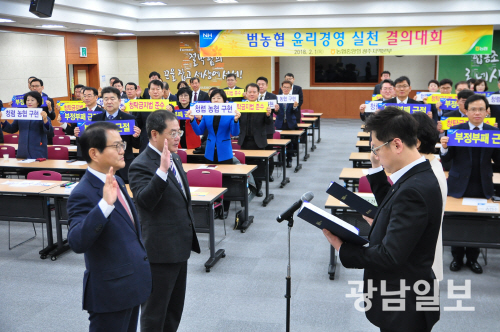이날 참석한 임직원들은 협동과 혁신을 통한 정도경영으로 농업인이 행복하고 국민에게 사랑받는 농협을 구현하기 위해 ‘환부작신’의 자세로 잘못된 관행 타파와 조직문화 혁신에 솔선수범하고, 투명하고 공정한 업무처리, 청탁금지법 준수를 통한 부패근절 및 책임을 성실히 이행할 것을 다짐했다.