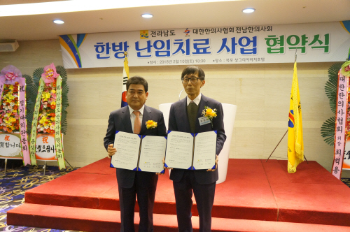 11일 전남도에 따르면 지난 10일 목포 샹그리아비치호텔에서 출산의지가 강한 난임여성을 적극 지원하기 위해 사단법인 대한한의사협회 전남한의사회와 ‘한방 난임치료 사업’ 협약을 체결했다.