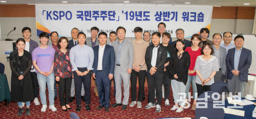 | ‘2019 국민체육진흥공단 국민주주단 워크숍’(중앙 회색정장_한종규 경영혁신본부장 외 국민주주단과 공단 직원들). 2019. 5. 16 |
