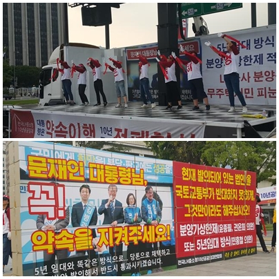그런데 LH공사가 공급한 분양전환을 목적으로 하는 10년 공공임대는 시세 감정가액으로 분양하겠다고 하고 있으니, 이 아파트에서 분양을 기다리고 있는 20평대 무주택 서민들은 기가 막혀 말을 잇지 못하고 있다. 그동안 연합회는 전매제한도 수용할테니 공공택지에 공급한 서민형 10년 공공임대도 분양가상한제를 적용해달며 국토교통부에 지속적으로 요구해왔다.