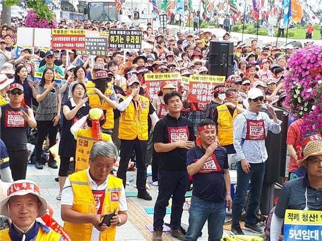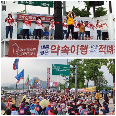 특히 이날 집회에는 크레인을 동원한 대형현수막이 30미터 높이로 광화문 광장 하늘에 펼쳐졌다. 우리 집을 뜻하는 노란우산의 행렬은 밤 늦게까지 청와대를 향해 갔으며, “대통령은 약속 이행, 10년공임 적폐청산”이란 외침이 광화문 밤하늘에 울려퍼졌다.