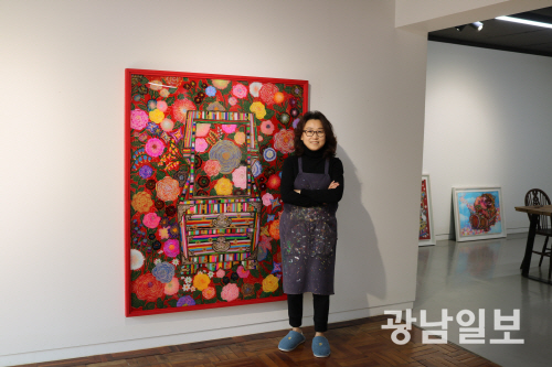| 서양화가 김왕주씨는 “‘행복해하는 그림’과 ‘행복해지는 그림’을 그리며 웃을 수 있는 작가로 평가받았으면 한다”고 밝혔다. |