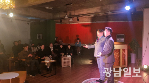 | 예술이 빽그라운드에서 열린 ‘듀오 콘서트’에서 노래하는 모습 |