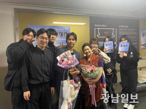 | 김 연주자가 ‘파리의 향기’라는 타이틀로 빛고을아트스페이스에서 열린 연주회를 마치고 기념사진을 촬영하고 있다. |