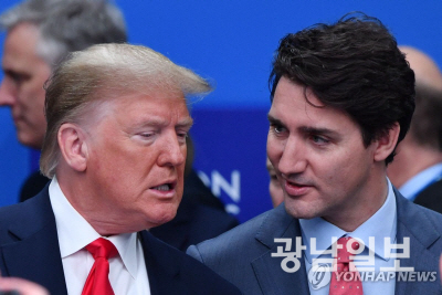 | 2019년 나토 정상회의에서 만난 트럼프 당선인과 트뤼도 총리(오른쪽) [AFP 연합뉴스 자료사진. 재판매 및 DB 금지] |