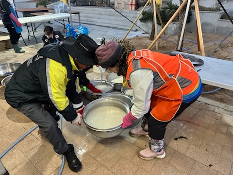 지난 2021년부터 순천에서 밥차 봉사활동을 해 온 강희준씨(50)는 “평소 재난 상황이 발생했을 때 참여해야겠다는 마음이 강해 제주항공 참사가 났을 때도 3일간 밥차 봉사를 했다”며 “27일 저녁에 순천자원봉사센터에서 도와달라는 연락을 받았다. 다음날 오전부터 조리기구, 식재료를 준비해 오후 늦게 안동에 도착해 끼니당 400인분을 조리하고 있다”고 말했다.