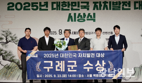 구례군이 최근 서울 백범김구기념관에서 열린 ‘2025년 대한민국 자치발전 대상’ 시상식에서 기초자치단체 부문 대상을 수상했다. |