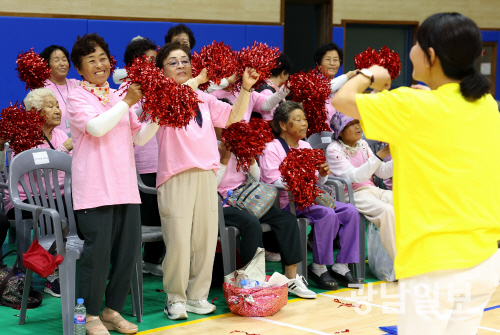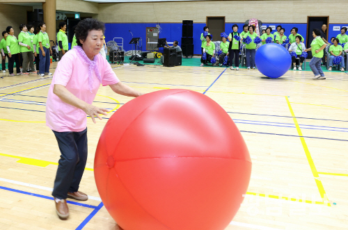 ‘강진군 찾아가는 어머니 한글학교’ 학생 200여명이 최근 강진국민체육센터에서 가을운동회를 개최, 는 청군·홍군으로 나눠 큰 공 굴리기, 돼지 몰기, 고무신 멀리던지기 등 다양한 경기를 진행했다. |