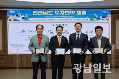 24일 진도군에 따르면 이날 전남도청에서 전남도, ㈜성경식품, ㈜거해와 500억원 규모의 투자협약을 체결했다.