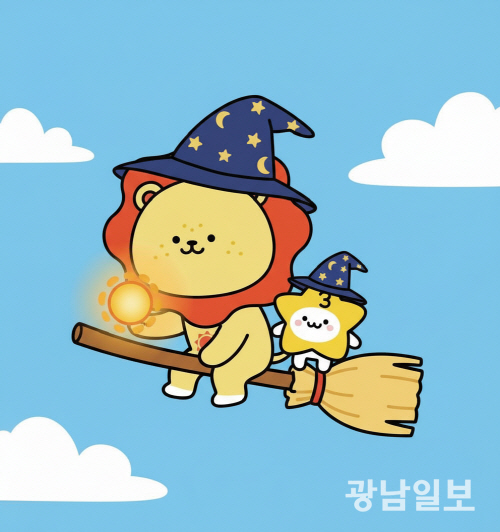 | 나주시 인공태양 캐릭터 태리(왼쪽)와 아토(오른쪽)가 마법 빗자루를 타고 있는 모습. |