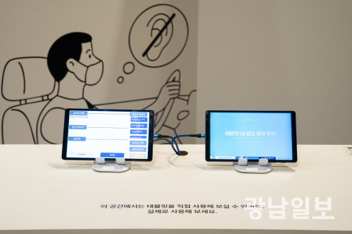 다른 사람을 이해하고 공감하고 환대하는 포용디자인을 선보이는 2전시관에서는 공존하는 해법을 설명하는 의미있는 작품이 전시되고 있다. 코액터스(Coactus)의 ‘고요한 M: 마음을 잇는 따뜻한 이동’(2020)은 청각장애인 운행하는 택시 서비스로 누구나 차별없이 고요하게 목적지에 도착할 수 있는 이동 서비스를 소개한다. 차내에 설치된 태블릿을 통해 청각 장애인 드라이버와 목적지 및 하차지점에 대한 원활한 의사소통이 가능하다. 무엇보다 장애 등급이 없어 장애인 콜택시를 이용하기 어려운 고령자와 교통약자가 ‘블랙캡’을 타고 자유롭게 이동할 수 있는 점이 좋은 반응을 끌어냈다. 휠체어를 탄 채로 승하차가 가능한 ‘블랙캡’ 모델은 3전시관에서 만나볼 수 있다.