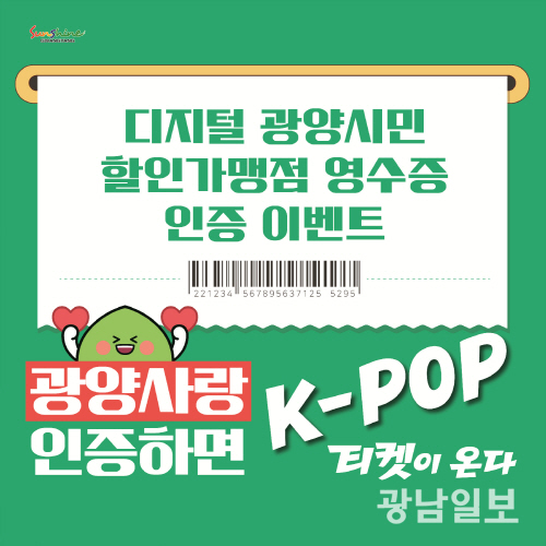 이번 이벤트는 △고향사랑기부제 기부 인증 △디지털 광양시민 할인가맹점 영수증 인증 두 가지 방식으로 참여할 수 있다. 당첨자에게는 다음달 17일과 18일 열리는 제5회 광양 K-POP 페스티벌 지정석 입장권이 제공된다.