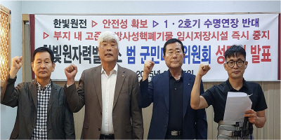 이어 “1호기 제어봉조작실패에 따른 열출력증강사건, 수소제거기 사건, 냉각재 펌프 내 30㎝ 드라이버 발견 등 수많은 사고 고장으로 한빛원전 안전성에 군민들의 불안감 증폭되고 있다”며 “한빛원전 1·2호기는 설계수명까지 가동하는 것이 지역 주민과의 약속이다. 올해 12월22일 설계수명 만료일에 즉시 폐로해야 한다”고 주장했다.