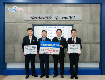 정맹화 호반블루에너지 대표는 “영광에 둥지를 틀고 성장해 가는 기업으로서 지역민과 함께 상생하며 나누는 기업이 되고자 성금을 마련했다”며 “이번 나눔이 어려운 이웃들의 마음에 작은 위로가 되길 바란다”고 말했다.