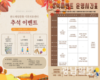 이벤트는 다음달 1일부터 10일까지 9일간(추석 당일 휴무) 완도해양치유센터와 해양기후·문화 치유센터에서 진행된다.
