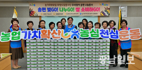 농협 광주본부는 최근 본부에서 (사)농가주부모임 광주시연합회와 관내 홀몸어르신과 소외계층 130가구에 모싯잎 송편을 전달하며 따뜻한 나눔을 실천했다. |