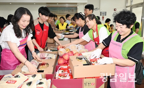 민족 대명절 추석을 앞두고 26일 오전 광주 서구청 구내식당에서 열린 ‘넘치는 정(情) 풍성한 한가위’ 행사에 참석한 서구자원봉사센터 봉사자들이 관내 취약계층에 보낼 명절음식 꾸러미를 포장하고 있다.