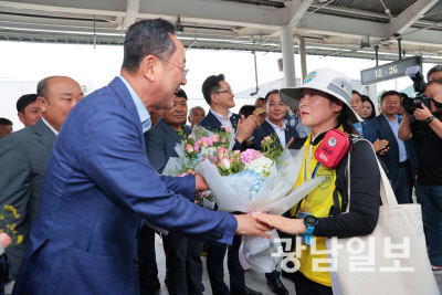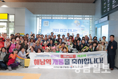 행사는 오전 8시 2분 목포역을 출발해 31분 만에 해남에 도착한 새마을호의 첫 방문객에게 꽃다발을 증정한데 이어 오전 7시 48분 부산을 출발해 오후 12시 25분 해남에 도착한 남도해양관광열차(S-train) 단체여행객을 대상으로 환영식이 진행됐다.