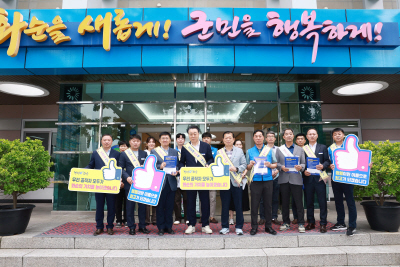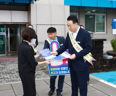 구복규 군수와 노동조합 관계자는 아침 출근길에 전 직원과 민원인을 대상으로 청렴 전단을 배부하고, 어깨띠와 손팻말 등을 활용해 공직자 스스로 청렴 기준을 지킬 수 있도록 참여를 독려했다.