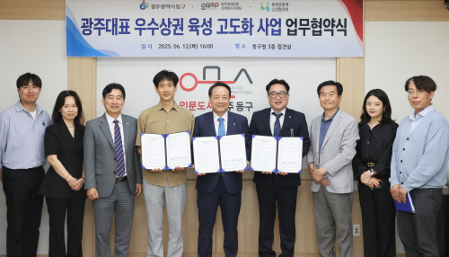 | 동명공동체상생협의회는 지난 6월12일 광주 동구, 광주경제진흥상생일자리재단과 ‘광주 우수상권 집중 육성사업’ 업무협약을 체결했다. |