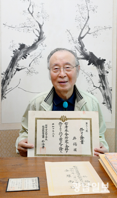 민족문제연구소 지도위원이자 식민지역사박물관 명예관장인 심정섭씨가 30일 조선공민교육회 자료와 임곡공립보통학교교원촉탁장, 만한실업협회 특별회원증등 3점을 본보에 독점 공개했다. 최기남 기자 bluesky@gwangnam.co.kr |