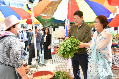 정철원 담양군수가 최근 직접 창평임시시장에서 장을 보며 시장 상인들을 격려하고 애로사항을 청취했다. |