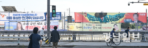 한가위 맞은 현수막 전쟁