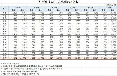 더불어민주당 진선미 의원(교육위·서울 강동구갑)이 7일 교육부로부터 받은 자료에 따르면, 전국 초중고 기간제 교사는 해마다 증가해 지난해 말 6만1001명에 이르렀다.