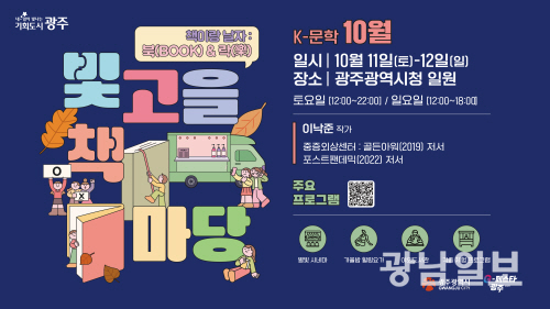 한편 ‘빛고을 책마당’ 일부 프로그램은 사전 예약제로 운영되며, 광주문화예술통합플랫폼 ‘디어마이광주’를 통해 신청 가능하다. 자세한 사항은 광주시 문화유산자원과(062-613-3442)로 문의하면 된다.