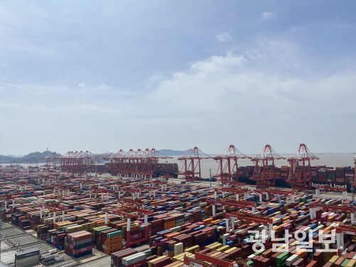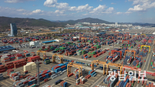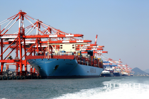 글로벌 해운사 컨테이너선이 기항한 광양항 컨테이너부두 |