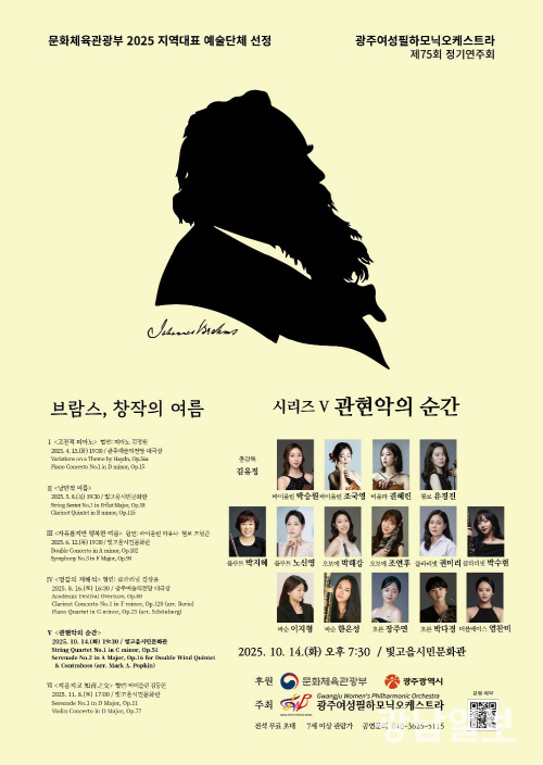 광주여성필은 지난 1월 문화체육관광부와 광주시가 지원하는 ‘2025년 지역대표 예술단체’로 선정돼 예술적 역량을 공식 인정받았다. 이후 독일 작곡가 브람스가 유럽의 여러도시에서 작곡한 명곡을 중심으로 ‘브람스, 창작의 여름’ 시리즈 무대를 이어오고 있다.