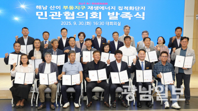 13일 해남군에 따르면 최근 군청 대회의실에서 ‘해남 산이 부동지구 재생에너지 집적화 단지 민관협의회 발족식’을 갖고, 대규모 재생에너지 집적화 단지 조성을 위한 본격적인 민관 협력 체계를 구축했다.