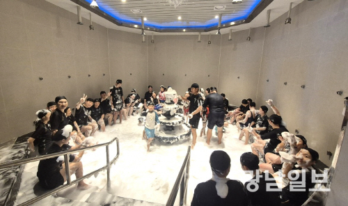 완도해양치유센터 해조류 거품 테라피실에 연휴기간 프로그램을 즐기기 위한 방문객들로 붐볐다.