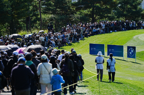 LPGA 투어 가을 ‘아시안 스윙’ 두 번째 대회인 BMW 레이디스 챔피언십(총상금 230만달러)이 16일부터 19일까지 해남 파인비치 골프링크스(파72·6785야드)에서 진행된다. 사진은 지난해 BMW 레이디스 챔피언십 대회장을 가득 채운 갤러리. 연합뉴스 |