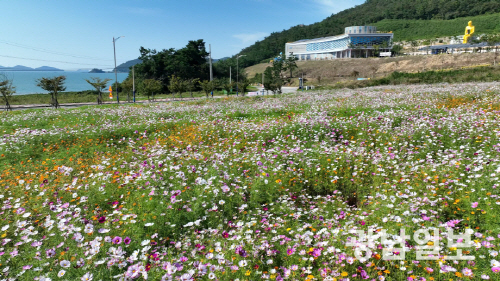 코스모스 꽃밭은 가을 여행 중인 관광객에게 청명한 가을날의 휴식 공간이 될 것으로 기대된다.
