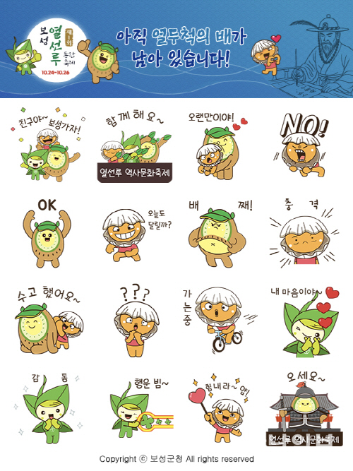 보성군 관계자는 “제1회 보성 열선루 이순신 역사문화축제는 젊고 유쾌한 감성으로 군민과 관광객에게 다가갈 것이다”며 “BS삼총사 이모티콘이 열선루와 보성을 널리 알리고, 누구나 공유하고 싶은 지역 대표 캐릭터로 자리매김하길 기대한다”고 말했다.