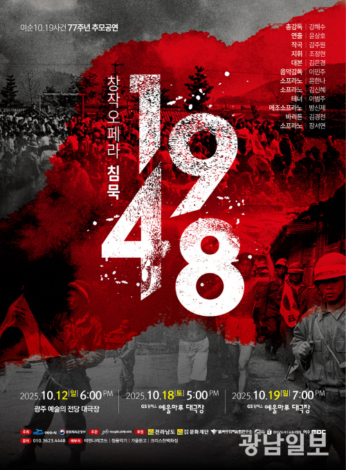 창작오페라 ‘침묵 1948’은 1948년 10월 여수에서 발생한 여순사건을 소재로 민간인 희생을 중심으로 구성된 작품으로 비극의 역사 속에서 인간의 존엄과 평화의 메시지를 음악과 무대예술로 풀어내 관객들에게 깊은 울림을 전할 예정이다.