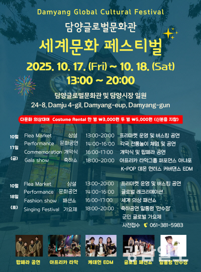 담양군은 17~18일 이틀간 담양글로벌문화관과 담양오일시장 일원에서 ‘세계문화페스티벌’을 연다.
