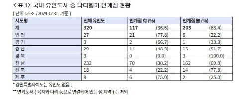 유인도서가 가장 많은 전남의 경우 232개소 중 인계점이 있는 도서는 30.2%인 70개소에 불과했다.